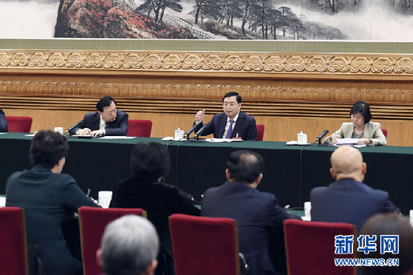 3月5日,中共中央政治局常委、全国人大常委会委员长张德江参加十二届全国人大五次会议浙江代表团的审议。 (高洁摄)