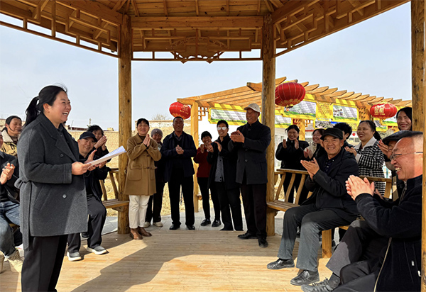 李光霞代表(前排左一)向村民宣传全国人代会精神。(代表供图)