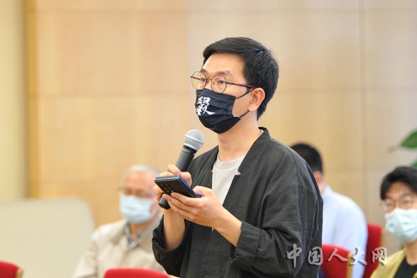 4月22日上午,全国人大常委会法制工作委员会举行记者会。全国人大常委会法工委发言人臧铁伟同志介绍立法工作有关情况并回答记者提问。图为澎湃新闻记者提问。冯涛 摄