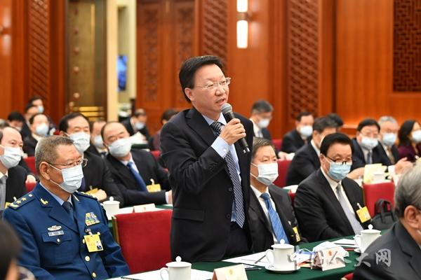 10月22日上午,十三届全国人大常委会第三十一次会议举行联组会议,就固体废物污染环境防治法执法检查报告进行专题询问。图为
