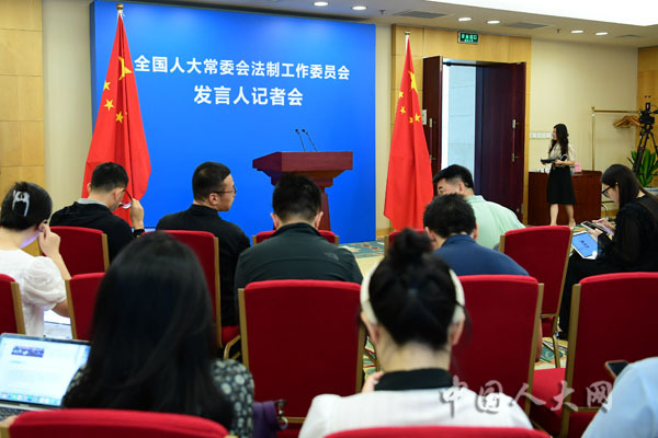 9月5日下午,全国人大常委会法制工作委员会举行记者会。全国人大常委会法工委发言人黄海华同志介绍立法工作有关情况并回答记者提问。图为记者会即将开始。张峻铭 摄