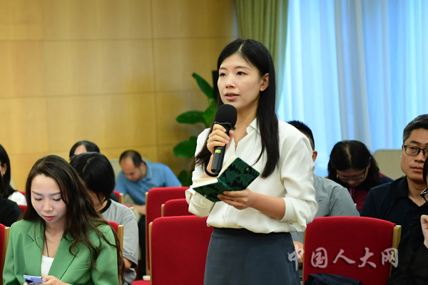 9月5日下午,全国人大常委会法制工作委员会举行记者会。全国人大常委会法工委发言人黄海华同志介绍立法工作有关情况并回答记者提问。图为南方都市报记者提问。张峻铭 摄