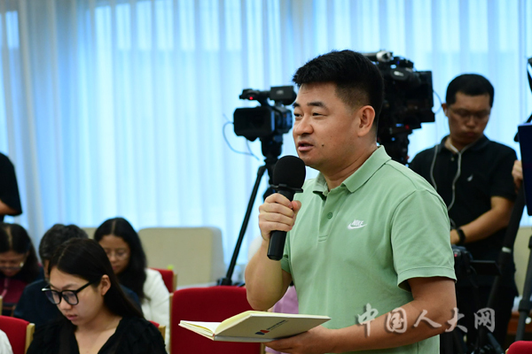 9月5日下午,全国人大常委会法制工作委员会举行记者会。全国人大常委会法工委发言人黄海华同志介绍立法工作有关情况并回答记者提问。图为每日经济新闻记者提问。张峻铭 摄