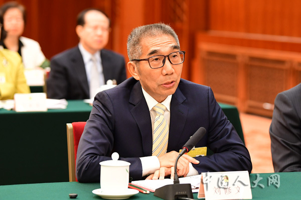 10月27日上午,十四届全国人大常委会第十八次会议举行联组会议,就关于2024年度企业国有资产(不含金融企业)管理情况的专项报告进行专题询问。图为常委会委员、财经委委员刘修文提问。张峻铭 摄