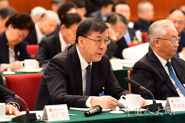 10月27日上午,十四届全国人大常委会第十八次会议举行联组会议,就关于2024年度企业国有资产(不含金融企业)管理情况的专项报告进行专题询问。图为科技部部长阴和俊回答问题。张峻铭 摄