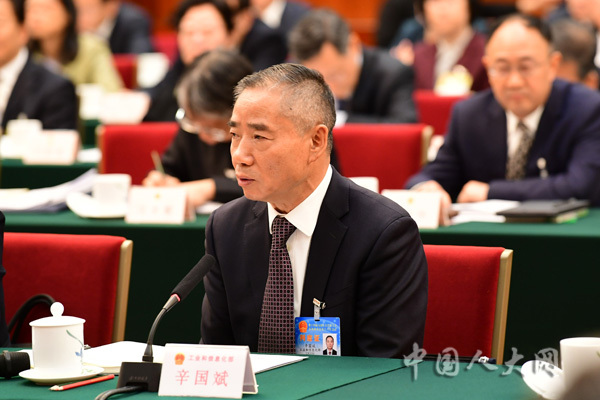 10月27日上午,十四届全国人大常委会第十八次会议举行联组会议,就关于2024年度企业国有资产(不含金融企业)管理情况的专项报告进行专题询问。图为工业和信息化部副部长辛国斌回答问题。张峻铭 摄