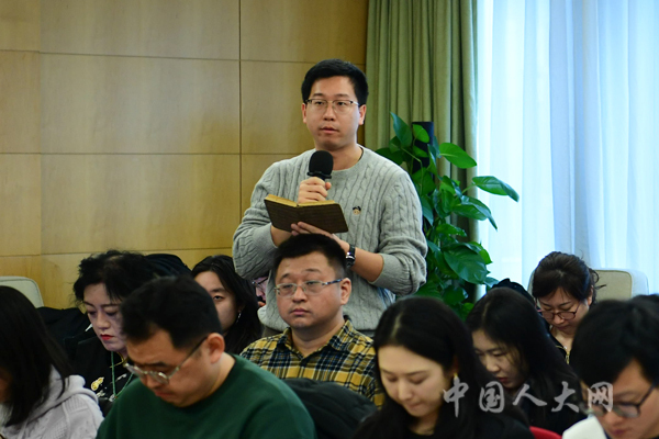 12月19日上午,全国人大常委会法制工作委员会举行记者会。全国人大常委会法工委发言人黄海华同志介绍立法工作有关情况并回答记者提问。图为新华社记者提问。张峻铭 摄