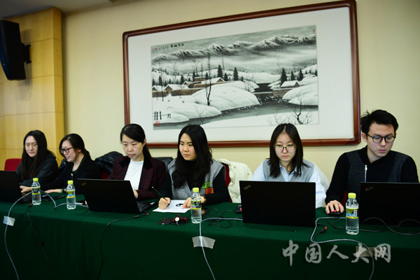 12月19日上午,全国人大常委会法制工作委员会举行记者会。全国人大常委会法工委发言人黄海华同志介绍立法工作有关情况并回答记者提问。图为中国人大网正在现场直播。张峻铭 摄