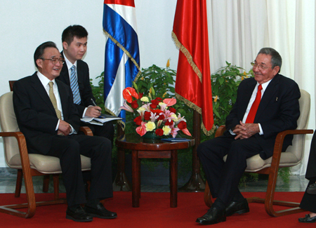 Wu Bangguo (L), chairman of the Standing Committee of China's National People's Congress, meets with President of the Council of State of Cuba Raul Castro Ruz in Havana, capital of Cuba, on Sept. 2, 2009. (Xinhua/Ma Zhancheng)
