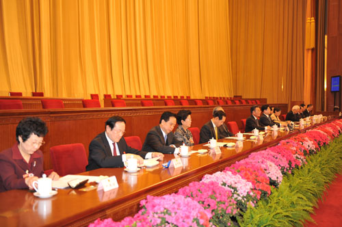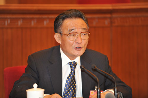 Wu Bangguo addresses the preliminary session before China's parliamentary session at the Great Hall of the People in Beijing March 4, 2009. (www.npc.gov.cn/Wang Xinqing)