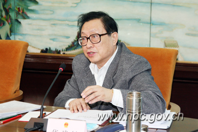 10月24日上午,十一届全国人大常委会第五次会议分组审议企业国有资产法草案和消防法修订草案。上图为华建敏副委员长在分组会上发言。