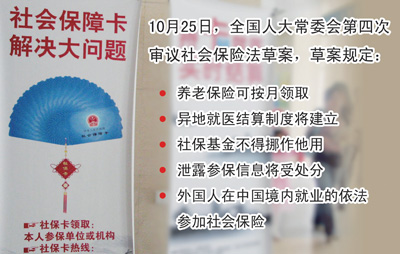 10月25日,十一届全国人大常委会第十七次会议审议社会保险法草案。
