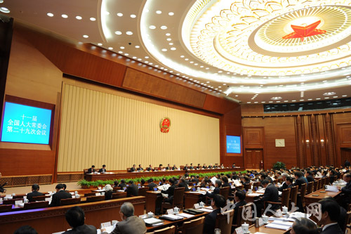 十一届全国人大常委会第二十九次会议第一次全体会议会场