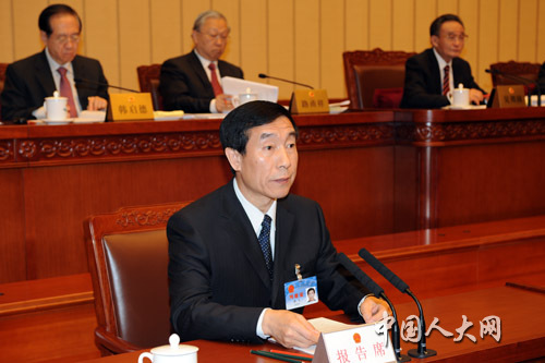 12月24日上午,十一届全国人大常委会第三十次会议举行第一次全体会议,受委员长会议委托,全国人大常委会法制工作委员会副主任李飞作全国人民代表大会常务委员会关于加强网络信息保护的决定草案的说明。马增科 摄