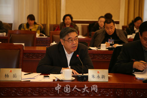 12月25日上午,十一届全国人大常委会第三十次会议举行分组会议,分组审议劳动合同法修正案草案,关于修改农业法个别条款的决定草案,关于授权国务院在广东省暂时调整部分法律规定的行政审批的决定草案,中央军事委员会关于提请审议批准中国人民解放军选举委员会人选的议案。图为全国人大常委会委员朱永新在分组会上发言。中国人大网 向航 摄