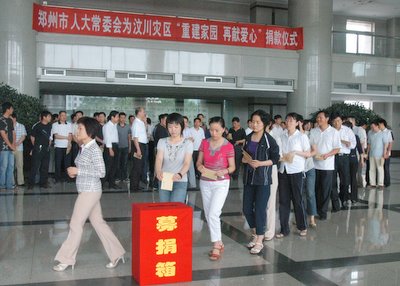 郑州人大网5月21日讯:今天上午,市人大常委会组成人员和机关共产党员缴纳“特殊党费”,干部职工为抗震救灾、重建家园再次捐款。