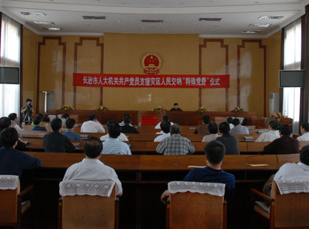 长治市人大机关共产党员交纳“特殊党费”支援灾区人民