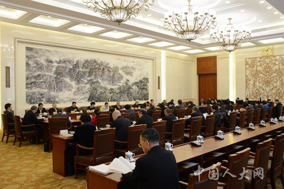 2月25日上午,十二届全国人大常委会第十九次会议举行分组会,审议全国人大常委会工作报告稿。图为分组会会场。中国人大网 马冬潇 摄