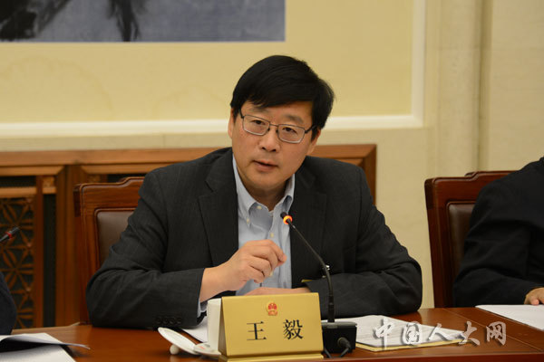11月2日上午,十二届全国人大常委会第三十次会议举行分组会,审议全国人大常委会执法检查组关于检查《中华人民共和国固体废物污染环境防治法》实施情况的报告,全国人大内务司法委员会、财政经济委员会、外事委员会、农业与农村委员会关于第十二届全国人民代表大会第五次会议主席团交付审议的代表提出的议案审议结果的报告。图为全国人大常委会委员王毅在分组会上发言。中国人大网 马冬潇 摄