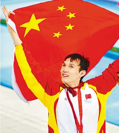 ——9月13日,在男子100米仰泳S11级决赛中,中国选手杨博尊打破世界纪录并获得金牌,拉开了中国泳队“大爆发”的序幕。此后,他的队友许庆、江福英、田荣、黄敏在各自比赛中分别打破世界纪录,赢得四块金牌。