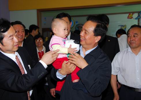 全国人大常委会副委员长兼秘书长李建国在大连考察大连市福利院儿童分院。