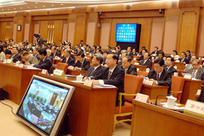 全体会议结束后,吴邦国委员长主持专题讲座,路甬祥副委员长主讲《走中国特色自主创新之路,建设创新型国家》。