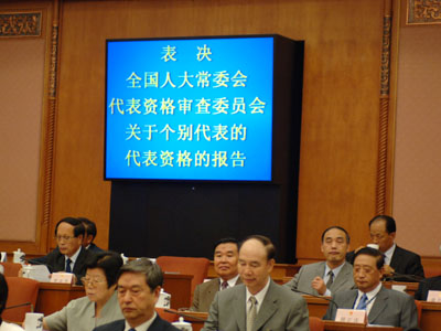 会议还表决通过了全国人大常委会代表资格审查委员会关于个别代表的代表资格的报告和任免名单。