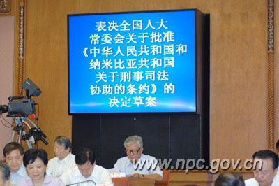 表决全国人大常委会关于批准《中华人民共和国和纳米比亚共和国关于刑事司法协助的条约》的决定草案
