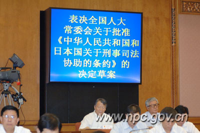 表决全国人大常委会关于批准《中华人民共和国和日本国关于刑事司法协助的条约》的决定草案