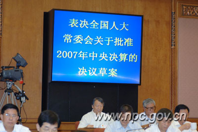 表决全国人大常委会关于批准2007年中央决算的决议草案
