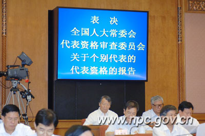 表决全国人大常委会代表资格审查委员会关于个别代表的代表资格的报告