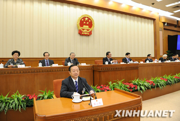 12月27日,十一届全国人大常委会在北京人民大会堂举行第七讲专题讲座,题目是《我国的保险法律制度》。吴邦国委员长主持讲座。讲座主讲人、中国政法大学教授、民商经济法学院院长王卫国从保险和保险法概述、我国保险业的现状、我国保险法律制度的完善等三个方面作了详细讲解。新华社记者马占成摄