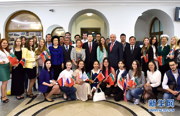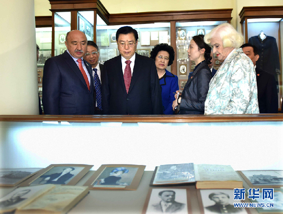 6月10日,全国人大常委会委员长张德江在俄罗斯参观访问喀山联邦大学。 新华社记者李涛摄
