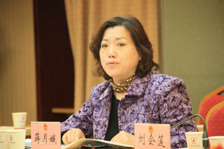 全国妇联权益部部长蒋月娥提问女职工.