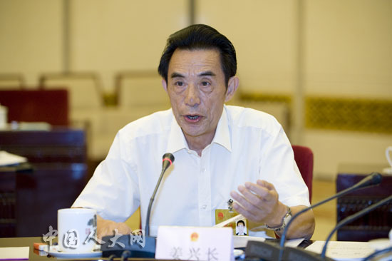 8月25日上午,十一届全国人大常委会第十六次会议分组审议刑法修正案(八)草案。图为全国人大常委会委员姜兴长在分组会上发言。中国人大网 李杰摄