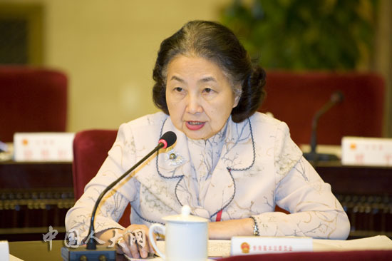 8月24日上午,十一届全国人大常委会第十六次会议分组审议《中华人民共和国香港特别行政区基本法附件一香港特别行政区行政长官的产生办法修正案(草案)》,《中华人民共和国香港特别行政区基本法附件二香港特别行政区立法会的产生办法和表决程序修正案(草案)》,涉外民事关系法律适用法草案。图为香港特别行政区基本法委员会副主任梁爱诗在分组会上发言。中国人大网 李杰摄