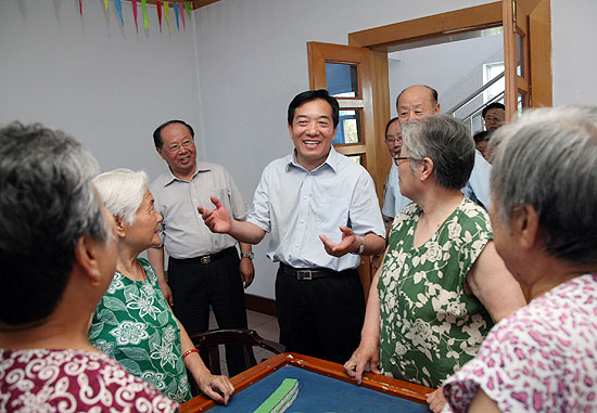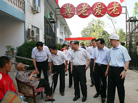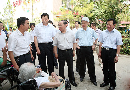在市人大常委会主任白红战的陪同下,黄镇东一行实地考察了金水区文化路街道办事处农科院颐和家园社区养老服务中心和青龙山温泉疗养院,针对老年人基本生活情况,养老机构的规划、建设以及老年社会保障体系建设情况、老年人权益保障存在问题等方面进行调研。