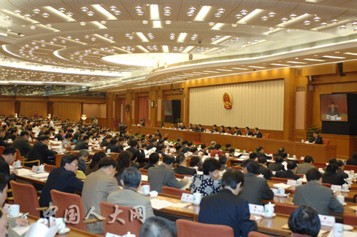 全国人大常委会副委员长王兆国、路甬祥、乌云其木格、韩启德、陈至立、周铁农、李建国、司马义•铁力瓦尔地、严隽琪、桑国卫出席会议。国务院副总理回良玉等列席会议。(包瓴瓴 文/王新庆 摄)