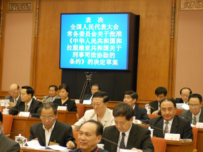 | 表决全国人民代表大会常务委员会关于批准《中华人民共和国和拉脱维亚共和国关于刑事司法协助的条约》的决定草案 |