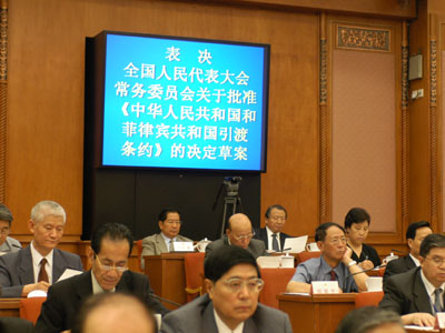 | 表决全国人民代表大会常务委员会关于批准《中华人民共和国和菲律宾共和国引渡条约》的决定草案 |