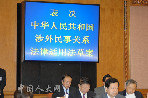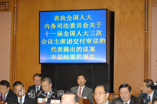 表决全国人大内务司法委员会关于十一届全国人大三次会议主席团交付审议的代表提出的议案审议结果的报告