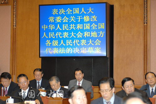 表决全国人大常委会关于修改中华人民共和国全国人民代表大会和地方各级人民代表大会代表法的决定草案