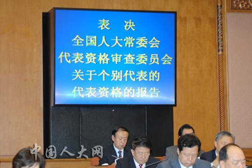 表决全国人大常委会代表资格审查委员会关于个别代表的代表资格的报告