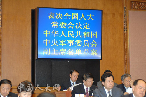 表决全国人大常委会决定中华人民共和国中央军事委员会副主席名单草案
