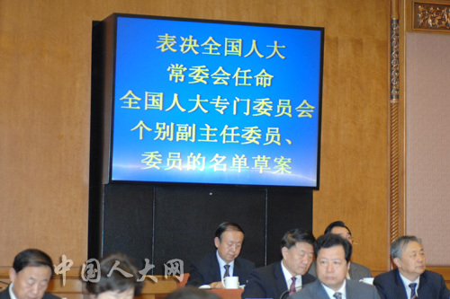 表决全国人大常委会任命全国人大专门委员会个别副主任委员、委员的名单草案