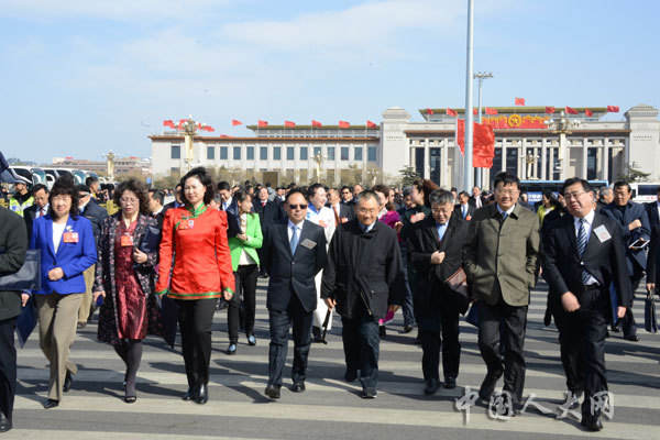 3月9日下午3时,第十二届全国人民代表大会第四次会议举行第二次全体会议,听取全国人大常委会委员长张德江关于全国人民代表大会常务委员会工作的报告,听取全国人大常委会副委员长李建国关于中华人民共和国慈善法草案的说明。图为代表入场。中国人大网 冯涛 摄