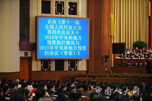 表决关于2010年中央和地方预算执行情况与2011年中央和地方预算的决议草案