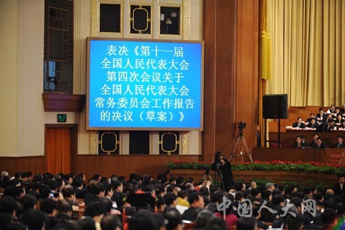 表决关于全国人民代表大会常务委员会工作报告的决议草案