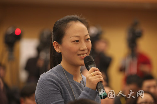 3月5日下午,十一届全国人大五次会议在梅地亚中心举行记者会,国家发展和改革委员会主任张平就“经济形势与宏观调控”的相关问题回答中外记者的提问。图为新华社现代快报记者提问。罗荣摄
