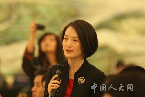 3月6日上午,十一届全国人大五次会议在人民大会堂三楼金色大厅举行记者会,外交部部长杨洁篪就“我国的对外政策和对外关系”问题答记者问。图为凤凰卫视记者提问。罗荣 摄
